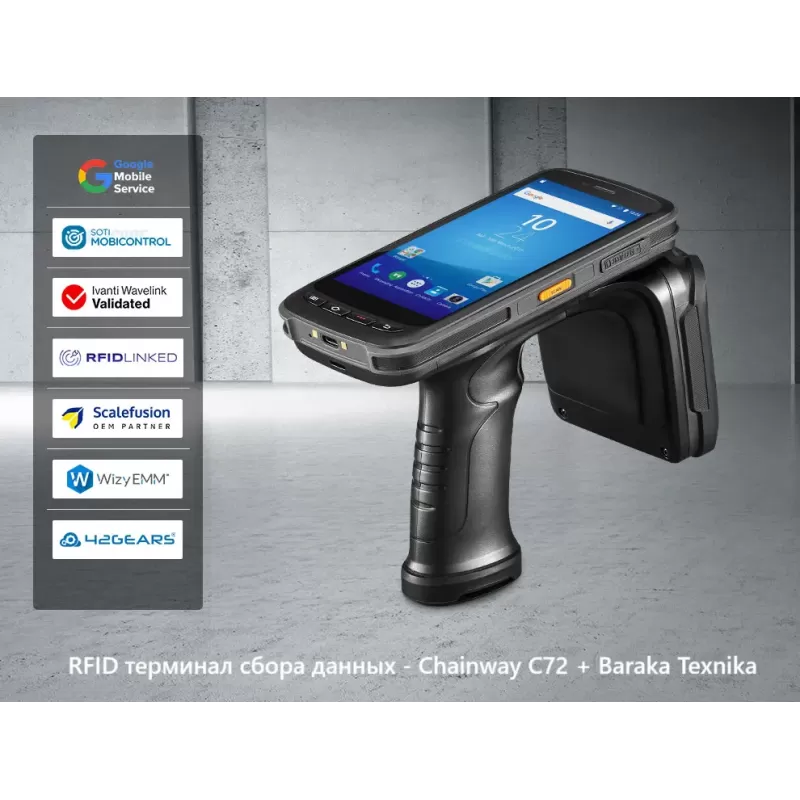 Chainway C72 - bu ishonchli RFID o'quvchi qurilma Android-ga asoslangan, UHF RFID sinfidagi eng yaxshilaridan biri. O'rnatilgan Impinj E710 va Impinj Gen2X, 30 metrdan ortiq o'qish va yuqori ishlashni ta'minlaydi. RFID o'quvchi qurilma, shtrix-kodlarni ham skaner qila oladi, sakkiz yadroli protsessor va 8000 mah/soat quvvatga ega kuchli batareyaga ega bo'lib, aktivlarni boshqarish, chakana savdo, omborxona, inventarizatsiya sohalarida intensiv foydalanish uchun juda mos keladi.